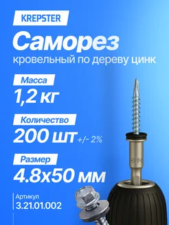 Саморезы кровельные по дереву цинк 4.8 х 50 мм