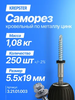 Саморезы кровельные по металлу цинк 5.5 х 19 мм