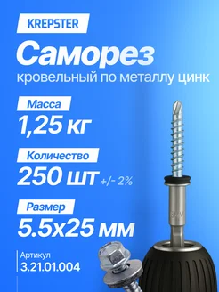 Саморезы кровельные по металлу цинк 5.5 х 25 мм