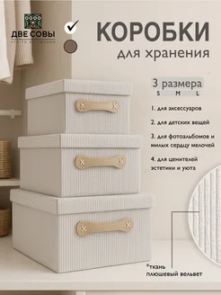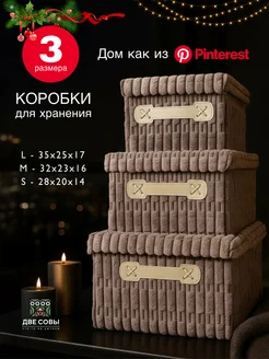 Коробки для хранения с крышкой набор 3 шт ткань рубчик
