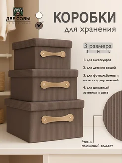 Коробки для хранения с крышкой набор 3 шт плюшевые