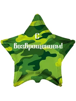 Шар звезда камуфляжная на дембель 45см С возвращением!