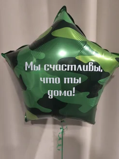 Шар звезда камуфляжная 45см Мы счастливы, что ты дома!