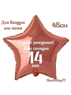 Шар звезда розовое золото 45см С ДР! Тебе сегодня 14 лет
