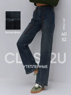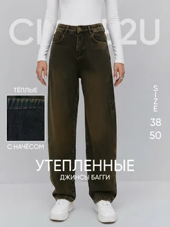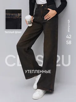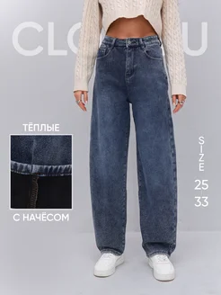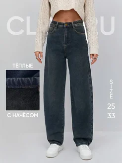 Джинсы багги утепленные с начесом на флисе зимние широкие