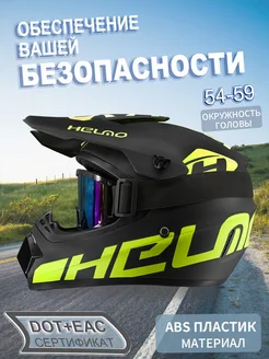 Мотошлем кроссовый для мото эндуро спортивный с очками