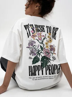 Футболка оверсайз с принтом HAPPYPEOPLE