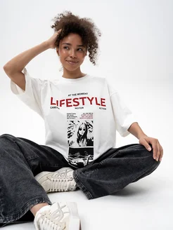 Футболка белая базовая оверсайз с принтом LIFESTYLE