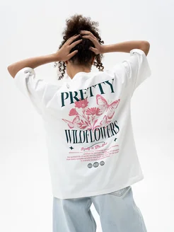 Футболка однотонная базовая с принтом PRETTY WILDFLOWERS