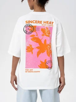 Футболка белая оверсайз с принтом SINECERE HEAT