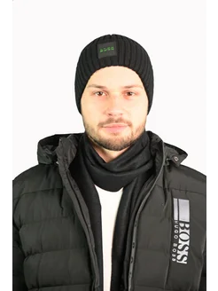 Шапка вязаная бини с логотипом зимняя от Бренда
