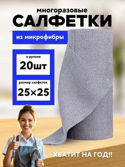 Салфетки для уборки в рулоне из микрофибры 20 шт