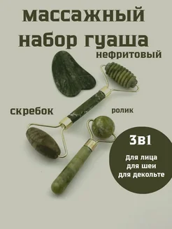 Набор гуаша для лица натуральный камень нефрит 3 в 1