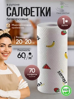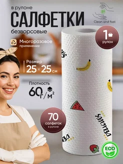 Салфетки для уборки в рулоне безворсовые 70 шт