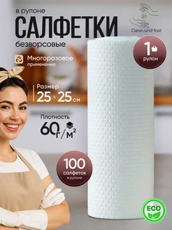 Салфетки для уборки в рулоне безворсовые 100 шт