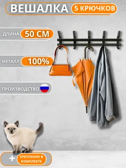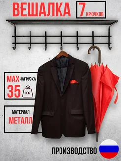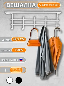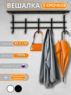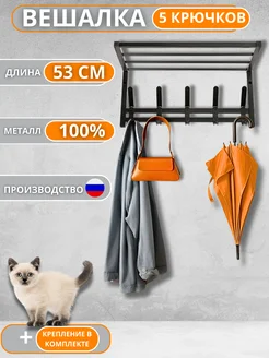 Вешалка настенная для одежды с полкой Торнадо 5 крючков