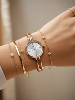 Кварцевые часы с браслетом под золото