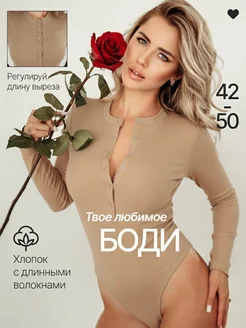 Боди с длинным рукавом вечернее утягивающее бежевое