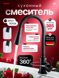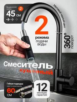 Смеситель кран для кухни с гибким изливом черный