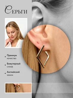 Серьги золотистые бижутерия ромбы, подарок