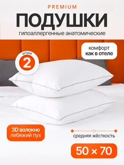 Подушки 50х70 2 шт для сна лебяжий пух, анатомические