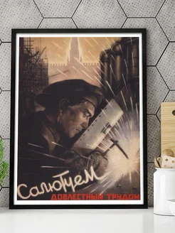 Плакат советский про труд сварщику