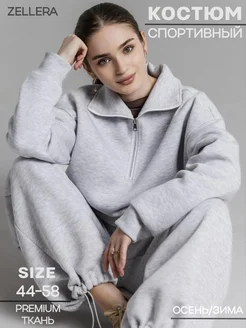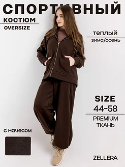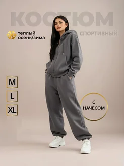 Теплый спортивный костюм на молнии оверсайз с начесом