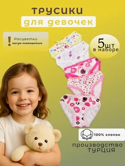 Трусы для девочки хлопковые дышащие,набор 5 штук