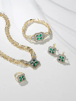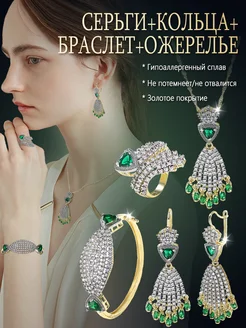 Набор зеленых сережек, браслетов, ожерелий, колец, бижутерии