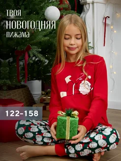 Пижама новогодняя детская со штанами и лонгсливом