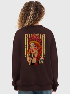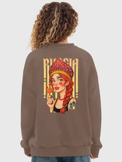 свитшот oversize без начеса хлопок с принтом русская девушка