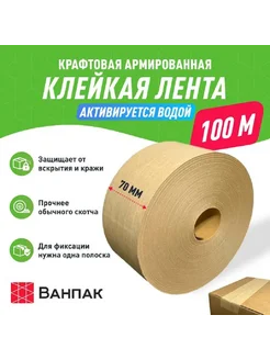 Водоактивируемый армированный крафт скотч 100 м, ONE70100CL