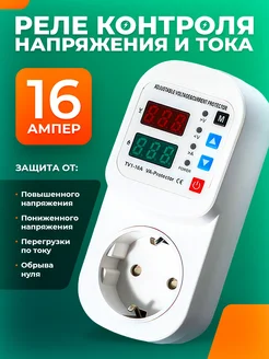 Реле контроля напряжения и тока в розетку 16А
