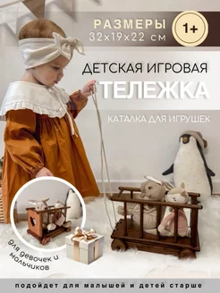 Тележка детская деревянная каталка на веревочке