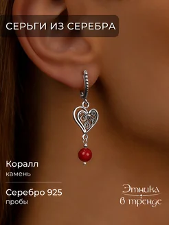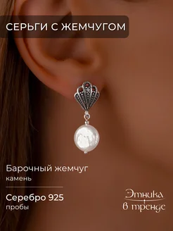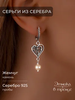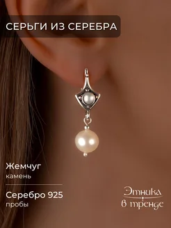 Серьги с жемчугом серебро 925 пробы с белым камнем