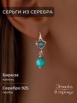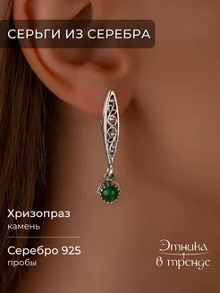 Серьги серебро 925 пробы с зеленым камнем хризопраз