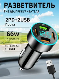 быстрая зарядка в прикуриватель 2-USB + 2-Type-C 3.1A