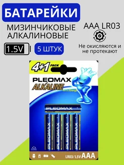 Батарейки мизинчиковые алкалиновые ААА Pleomax LR03 5 шт