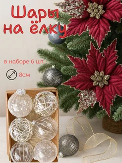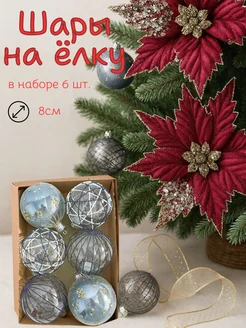 Игрушки новогодние, шары на ёлку, набор 6 шт
