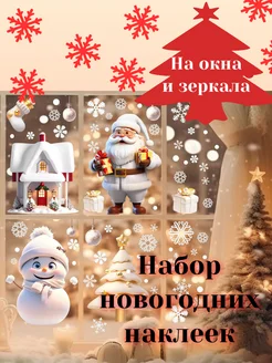 Новогодние наклейки на окна. Санта, 9 листов, А4