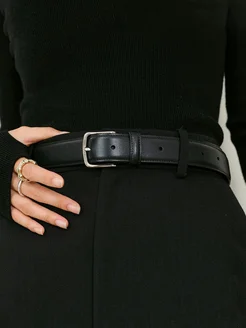 Ремень женский кожаный для брюк или джинс черный