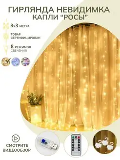Гирлянда штора новогодняя роса 3х3