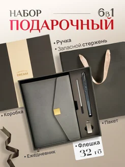Подарочный набор ежедневник недатированный с ручкой флешкой