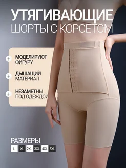 Утягивающие живот и бедра трусы-шорты с корсетом бесшовные