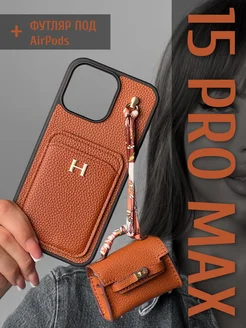 Чехол на iphone 15 pro max ккожаный с футляром под наушники