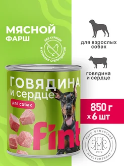 Консервы для крупных собак, говядина, сердце, 850 г, 6 шт