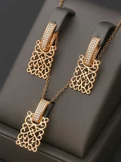 Набор бижутерии серьги и цепочка с подвеской позолоченные