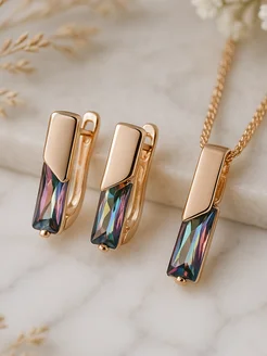 Набор серьги и цепочка с подвеской позолоченные