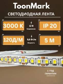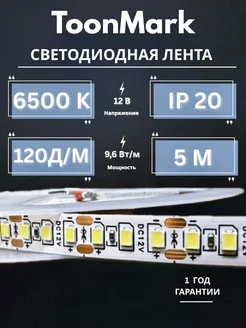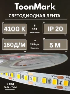 Светодиодная лента COB 5м 12V Холодный белый свет 10 W M