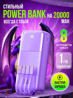 Мощный повербанк 20000 мАч с проводами. Быстрая зарядка